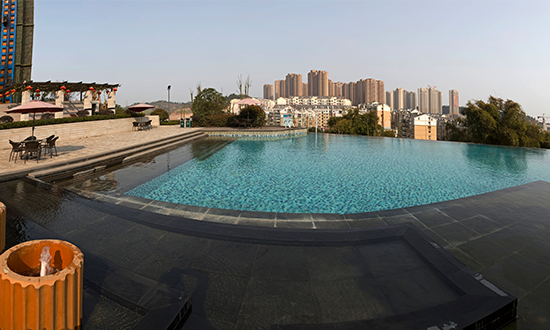 清江?尚玲瓏位于城東大道和合益路交匯處。項目總用地面積約79724平方米(約120畝),總建筑面積約22.5萬平方米,地上18.5萬平方米,規劃由9棟34層的高層住宅、4棟商業組成,總戶數1477戶,車位1576個,建筑密度25.27%,綠化率28%,容積率2.33。小區內配有一個8班的幼兒園、社區醫療點,和一個4萬平米的綜合商業體,包含有寫字樓、酒店和米蘭商業街。項目采用新古典建筑外立面,沉穩大氣,時尚尊貴。項目最大的特色就是保留了地塊內原有的自然山體,充分利用山體資源,保留原有的山體走向,依山就勢展開布置,山頂配備無邊泳池、懸空觀景平臺、休閑盤山石階小徑,運動休閑設施等,力圖打造一個有山有水可玩可賞的自然山體海德公園。
